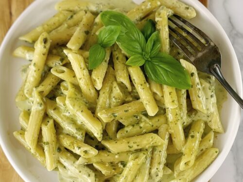 Pesto pasta is a classic Italian dish featuring pasta tossed in a vibrant,